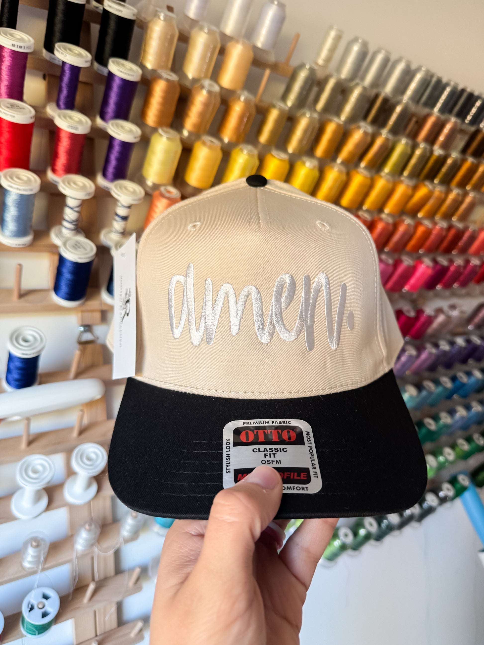 Otto 5-Panel Vintage Style Trucker Hat. Structured hat with a Mid Profile. Choose your hat and thread color. If you'd like a different hat color/thread combination, please leave a note in the special instructions box on the cart page prior to checkout.