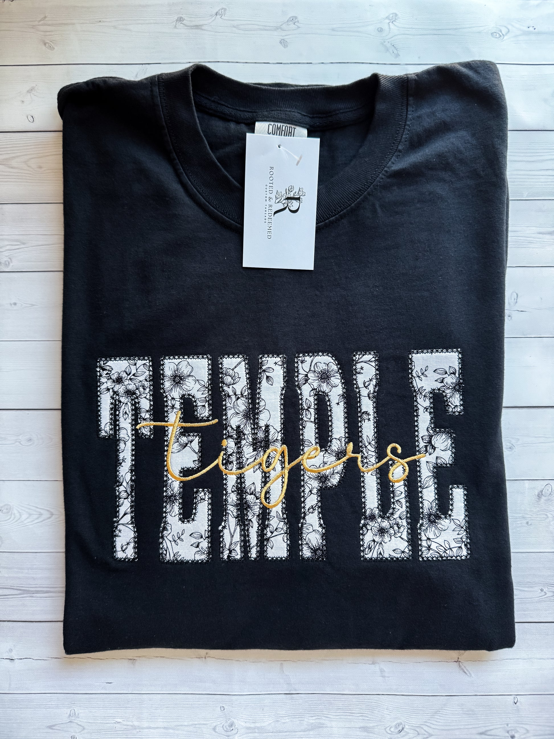 Temple Tigers Diamond Stitch Appliqué Embroidered T-Shirt